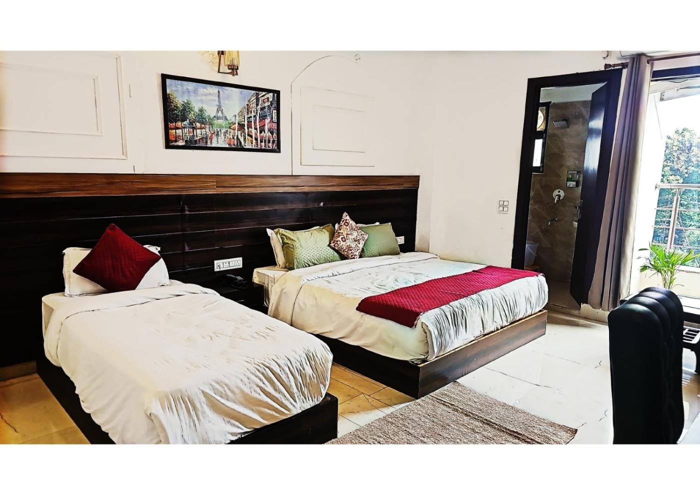 Deluxe Triple Room. Providing free toiletries and bathrobes, this triple room includes a private bathroom with a shower and a hairdryer. The spacious triple room provides air conditioning, soundproof walls, a seating area, a dining area, as well as a flat-screen TV with cable channels. The unit offers 2 beds. ;